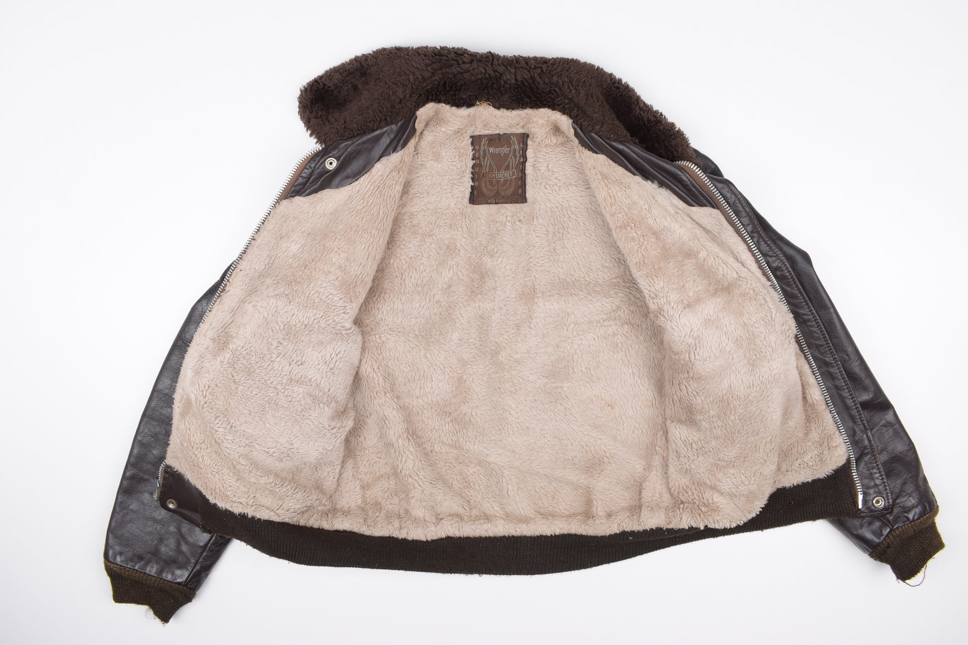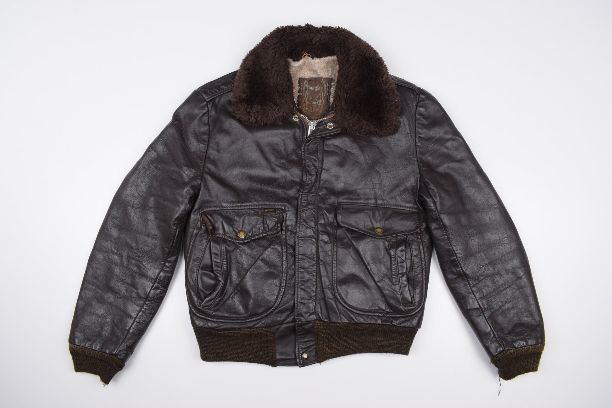 * Vintage Wrangler Brown Leather G-1 Flight Jacket, Made In USA, Size M, Good 6/10 *