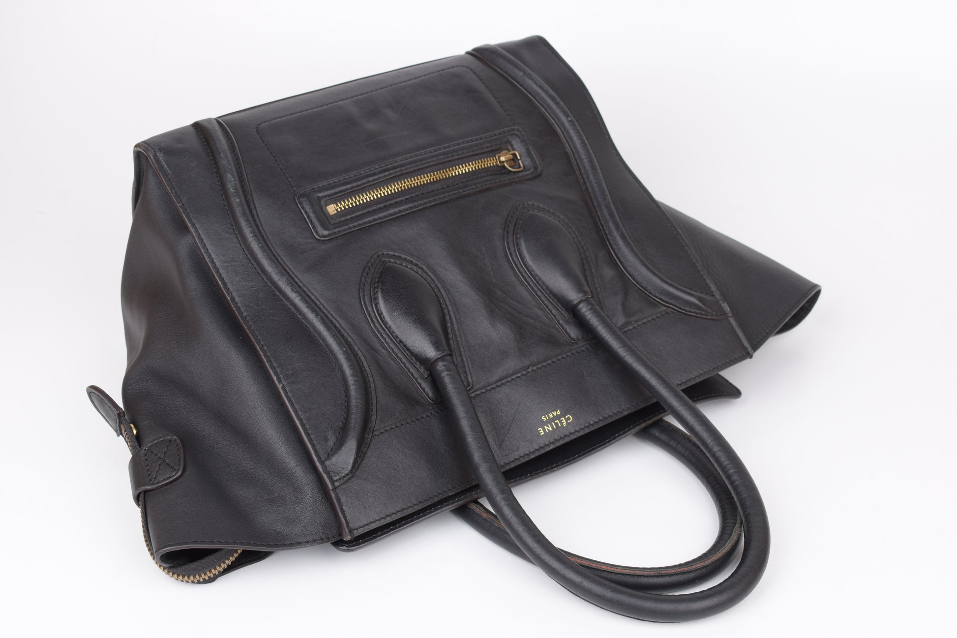 * CELINE 2014 Luggage Phantom Black Leather Hand Tote Bag, 30x30cm, V.Good 7/10 *Read